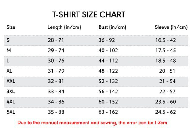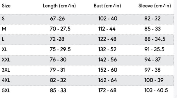 - Size for Sweatshirt, Hoodie and Zip Hoodie